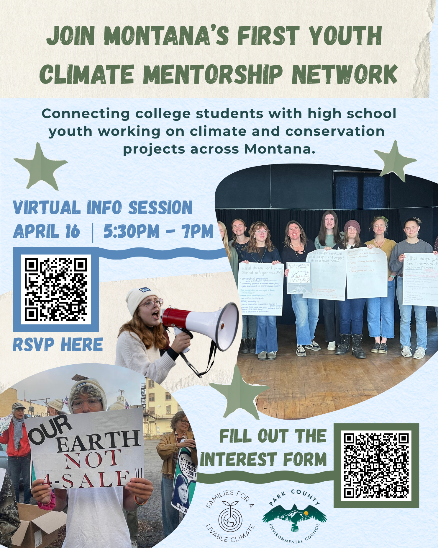 Join Families for a Livable Climate and Park County Environmental Council to learn more about an exciting new statewide initiative connecting college students with high school youth working on climate, conservation, and food systems projects across Montana.